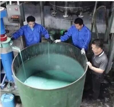 硅PU材料中的清漆中酯類溶劑遇水后與鐵質(zhì)的容器發(fā)生反應(yīng),導(dǎo)致材料顏色變綠、變黑,沒有一點光澤。