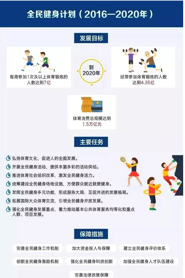 早在2016年6月15日,中國國務(wù)院印發(fā)《全民健身計劃(2016-2020)》,隨著“十三五”規(guī)劃施行,國民運(yùn)動乃至體育產(chǎn)業(yè)越來越受到重視,將進(jìn)入新的發(fā)展時代。