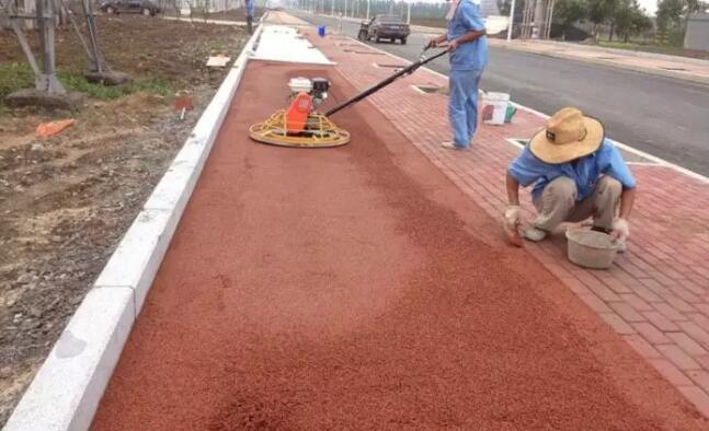 3、明快的鋪裝空間。因為是淺色系鋪裝,所以鋪裝空間明快、開放。擺脫了以前黑色鋪裝的凝重、壓抑。另外還可以在粘結劑中摻入各種色料,使得混凝土路面顏色多種多樣,容易形成各種圖案,可以結合周圍景觀自由設計,提高城市的美觀效果。